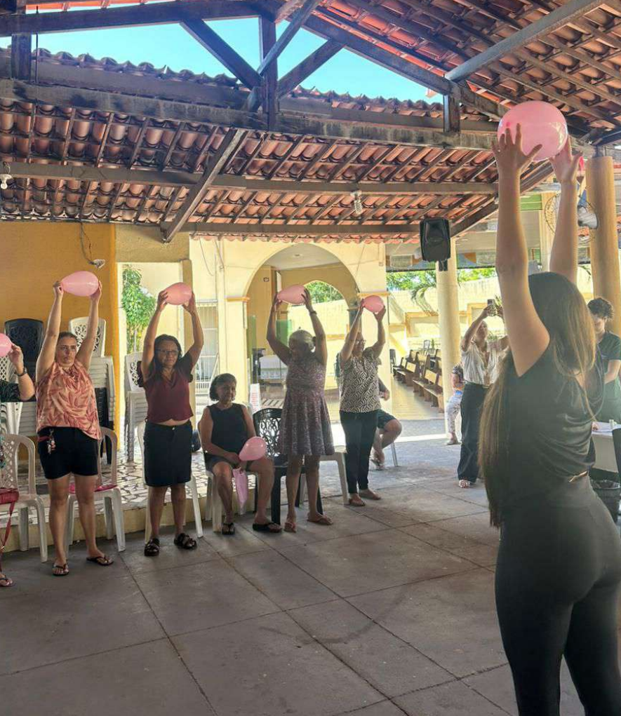 A metodologia adotada contemplou dinâmicas corporais, exercícios leves e atividades educativas, planejadas para favorecer o engajamento, a socialização e a compreensão dos participantes sobre a importância de manter um estilo de vida ativo. Durante a ação, os idosos também participaram de diálogos orientados sobre alimentação saudável, hidratação, sinais de alerta e cuidados diários que contribuem para o manejo adequado de doenças crônicas.