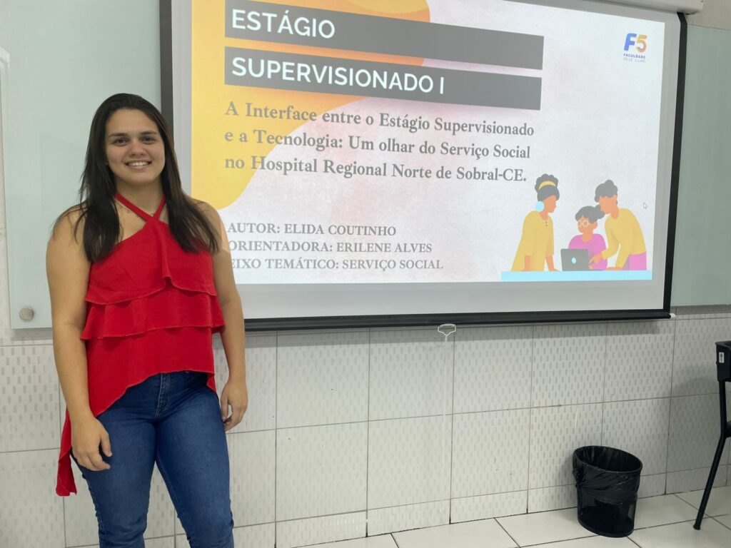 O curso de Serviço Social contou com cinco participantes, que apresentaram suas produções sob avaliação da Prof.ª Ma. Erilene Alves de Sousa, também no campus F5 Centro.