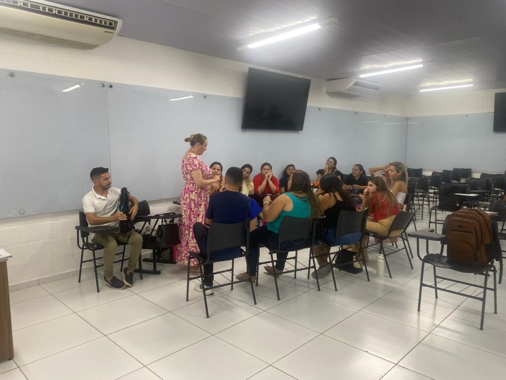 Os acadêmicos foram divididos em grupos para debater e desenvolver projetos de extensão, aproximando-se das realidades profissionais e comunitárias.