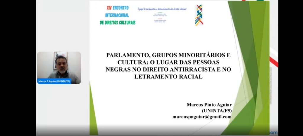 O Prof. Dr. Marcus Pinto Aguiar, docente do curso de Direito da Faculdade 05 de Julho (F5) e coordenador do Mestrado em Direito do UNINTA, apresentou sua pesquisa sobre racismo estrutural e direito antirracista durante o XIV Encontro Internacional de Direitos Culturais, realizado entre os dias 20 e 24 de outubro de 2025.