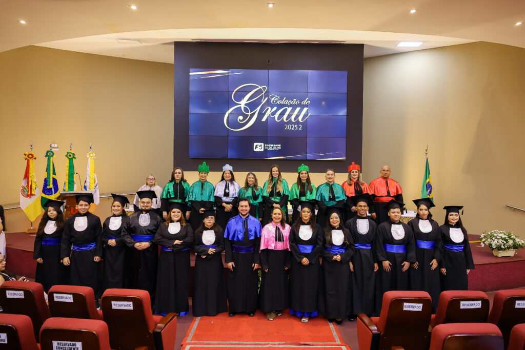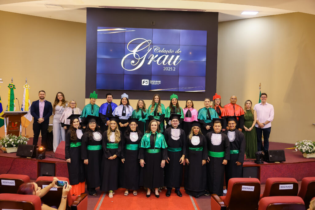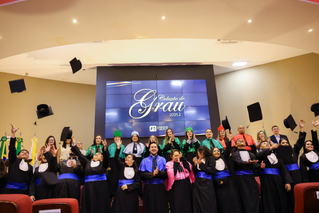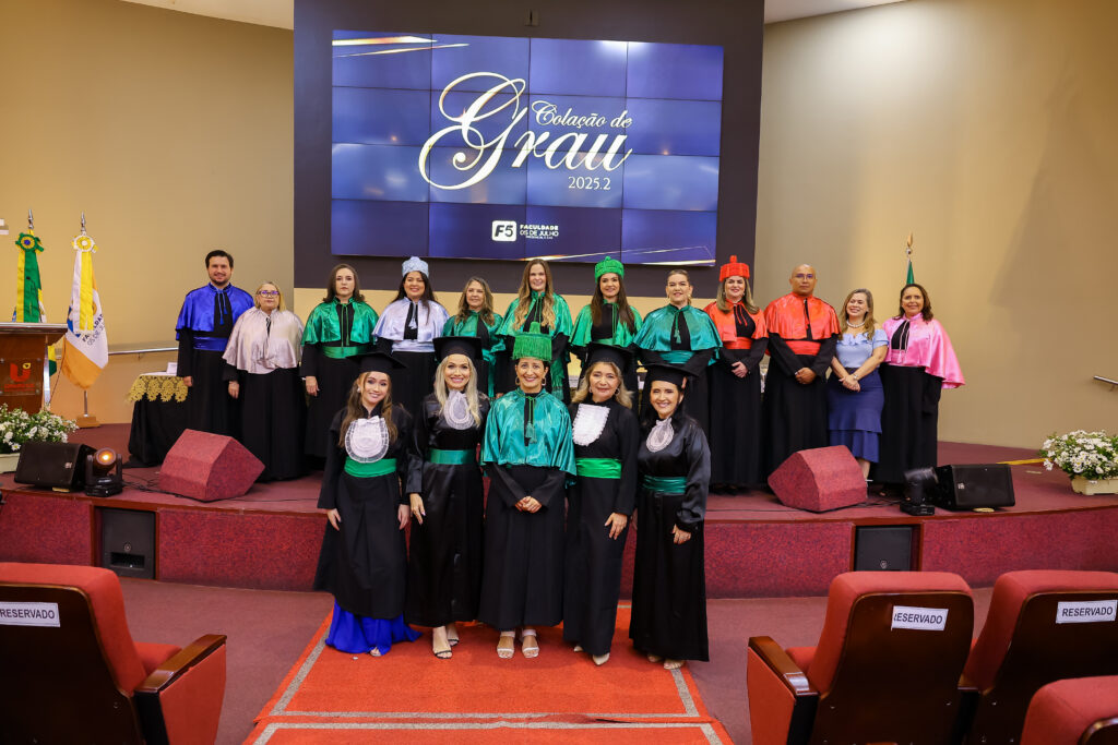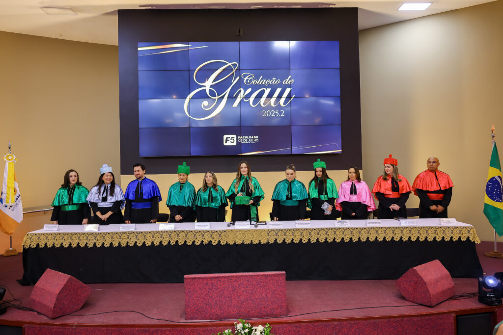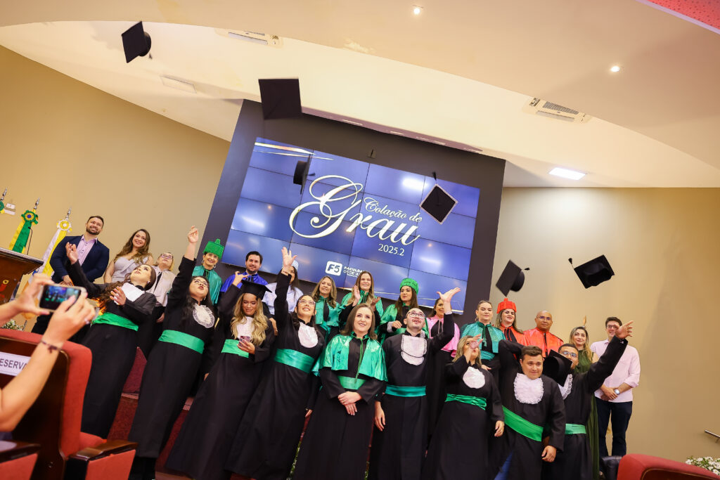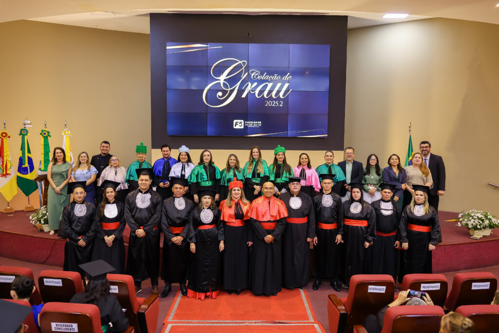 Na última terça-feira (dia 27 de janeiro de 2027), a Faculdade 05 de Julho – F5 promoveu a Solenidade de Colação de Grau 2025.2, no Auditório Oscar Spíndola Rodrigues Júnior, no Centro Universitário INTA – UNINTA. O evento marcou oficialmente a conclusão da graduação de acadêmicos dos cursos de Administração, Direito, Enfermagem e Serviço Social, em um momento que reuniu autoridades acadêmicas, docentes, familiares e convidados.
