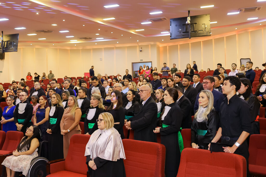 Solenidade reuniu formandos dos cursos de Administração, Direito, Enfermagem e Serviço Social no Auditório Oscar Spíndola Rodrigues Júnior.