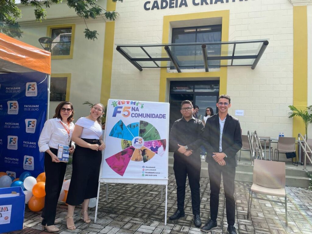 Na manhã da última sexta-feira, 24 de abril de 2025, a Faculdade 05 de Julho (F5), em parceria com a Secretaria do Trabalho e Desenvolvimento Econômico (STDE) de Sobral, promoveu mais uma edição do projeto F5 na Comunidade, desta vez na Cadeia Criativa, localizada no centro da cidade. A ação reuniu empreendedorismo, saúde e cidadania, oferecendo serviços gratuitos à população e promovendo a integração entre saberes acadêmicos e demandas sociais.