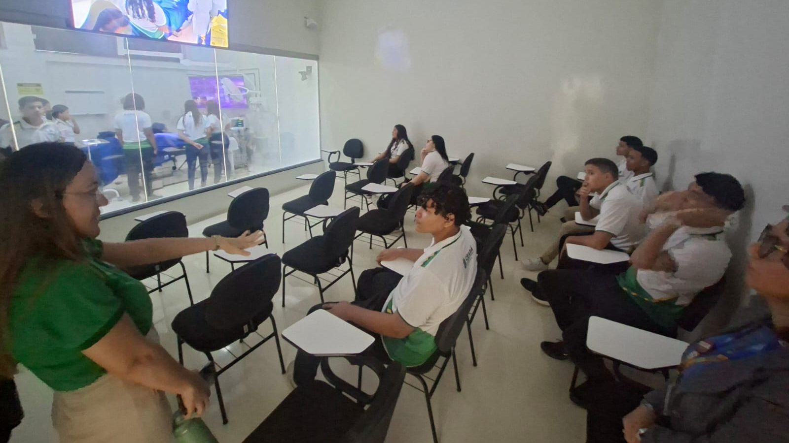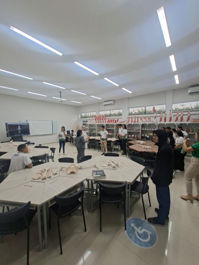Durante a programação, os estudantes conheceram de perto importantes espaços de aprendizagem prática, como o Laboratório de Habilidades Clínicas, o Laboratório Morfofuncional e o Laboratório de Microscopia e Histologia. A atividade possibilitou contato direto com estruturas e equipamentos utilizados na formação acadêmica, despertando o interesse pelas áreas da saúde.