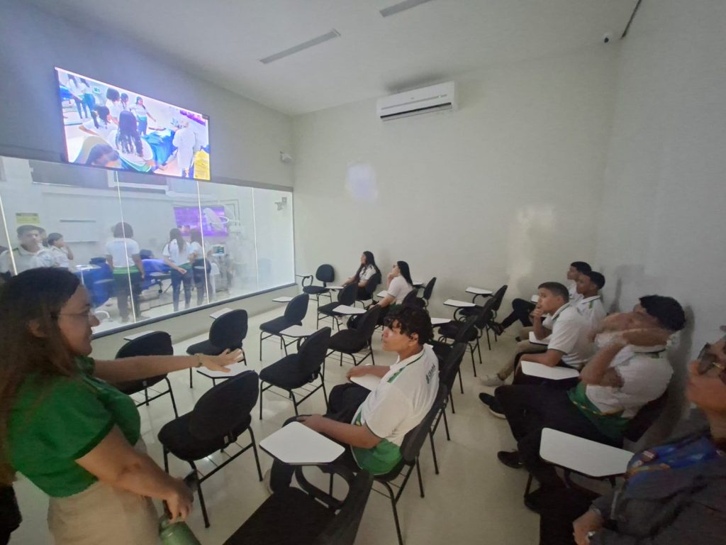 A instituição disponibilizou transporte para o deslocamento dos alunos, assegurando acolhimento e comodidade desde o início da programação. A atividade foi acompanhada pela coordenadora do setor de Relações Institucionais, Prof.ª Ma. Rafaele Aragão dos Santos, e contou com a participação da coordenadora dos laboratórios, especialista Priscila Maria de Sousa Silva, responsável por conduzir os estudantes durante as visitas.