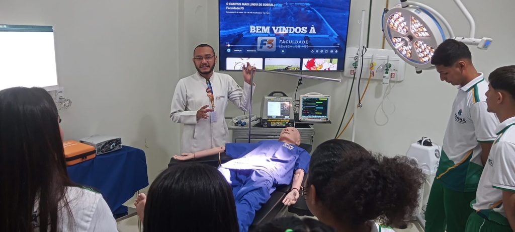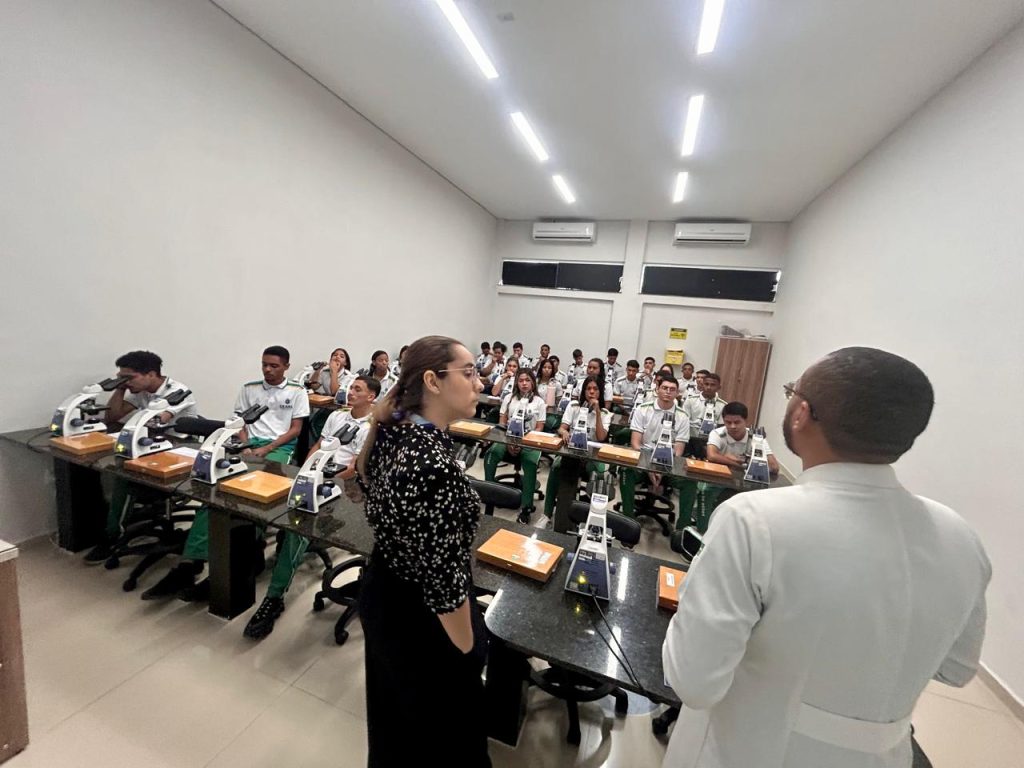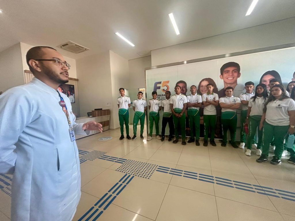 Em seguida, os alunos realizaram visitas guiadas aos laboratórios da instituição, acompanhados pelo técnico responsável. Também tiveram a oportunidade de conhecer o novo prédio do curso de Medicina, equipado com modernos laboratórios, salas de aula e espaços de convivência que integram a infraestrutura acadêmica da F5.