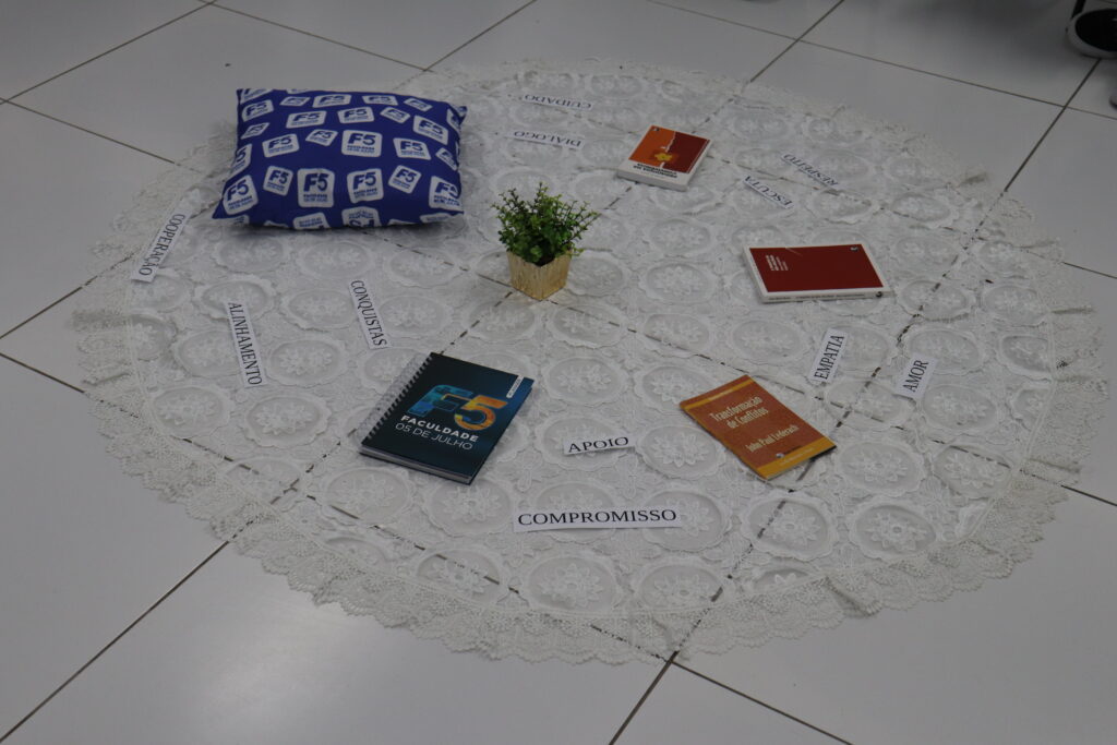 Na última sexta-feira (16 de maio de 2025), a Faculdade 05 de Julho (F5) realizou uma formação especial para o seu Corpo Técnico-Administrativo, com o tema “Fortalecendo Relações: Círculo de Paz no Ambiente de Trabalho”. O encontro aconteceu no espaço de convivência do campus sede e reuniu os colaboradores em um momento de escuta, reflexão e fortalecimento dos vínculos institucionais.