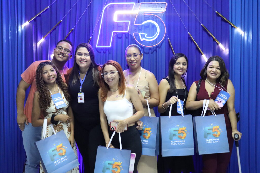 Na última segunda-feira, 25 de agosto de 2025, a Faculdade 05 de Julho (F5) realizou a Acolhida dos Calouros 2025.2, evento que integra o calendário acadêmico e tem como objetivo proporcionar aos ingressantes uma recepção institucionalmente organizada, alinhada às práticas pedagógicas e à promoção do pertencimento à comunidade universitária. A atividade ocorreu de forma simultânea nos campi Centro e Sede, reunindo calouros e veteranos em um ambiente de interação e socialização.
