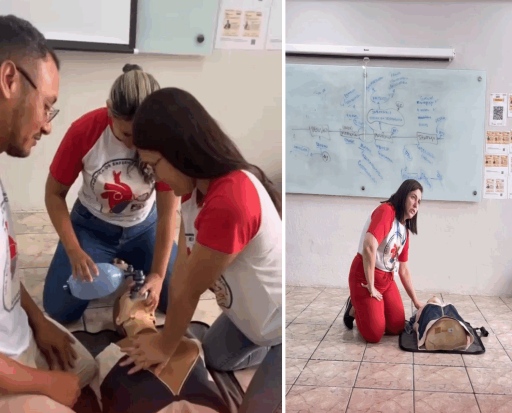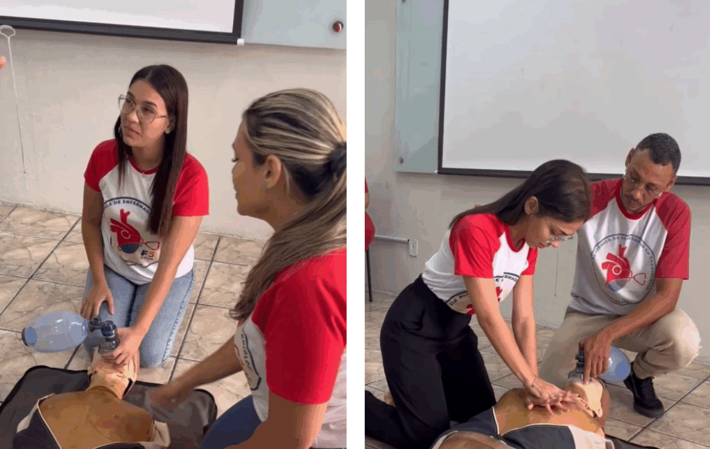 Durante o semestre, a LAENCARDIO realizou três encontros acadêmicos e duas atividades de extensão, articulando saberes teóricos às vivências aplicadas. A programação contemplou conteúdos essenciais, como assistência de enfermagem na unidade de internação, técnicas de aferição de pressão arterial, orientação sobre o uso do Currículo Lattes por meio do evento EVEN, além de aulas práticas de Suporte Avançado de Vida (SAV) e Suporte Básico de Vida (SBV). Essas atividades marcaram o encerramento do ciclo teórico e o início das práticas no Hospital do Coração, proporcionando aos estudantes uma imersão qualificada no cuidado cardiológico.